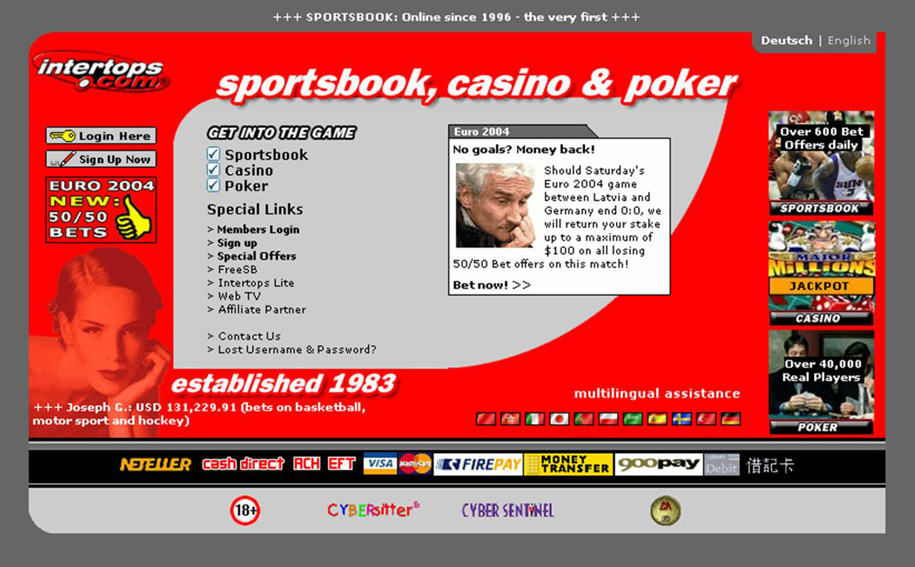Located in St. John's, Antigua, InterTops is an established name in the Sportsbetting industry. With PriceWaterhouse Coopers auditing their payout-ratios, the site joins the likes of other giants, such as industry pioneer Casino-on-Net, to take this step towards gaining customer trust.