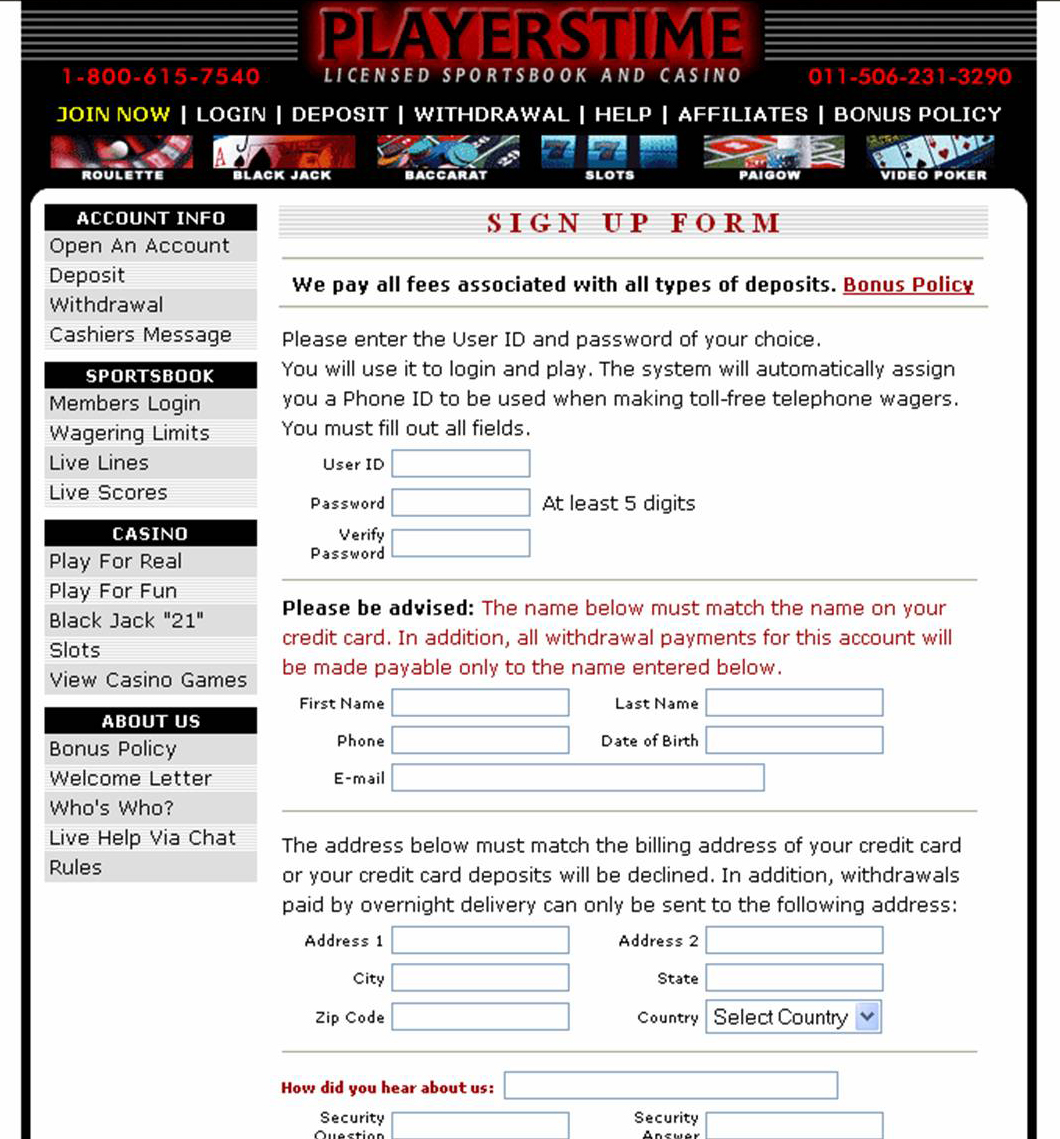 Registration is free, as for most websites, but there is a $50 minimum deposit before one can start betting on sports events. Customer service is a great feature of PlayersTime. The website seems geared mostly towards the occasional better.