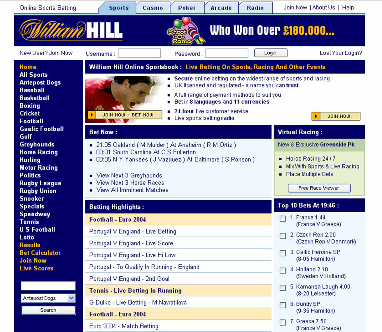 William Hill is focused mainly on UK horse-racing customers, but a wide range of British and American sports, and foreign languages, means that all types of bettors should be equally at home on this website, which is fast, easy-to-use, expansive and, therefore, recommended. William Hill is an industry leader, and deservedly so.