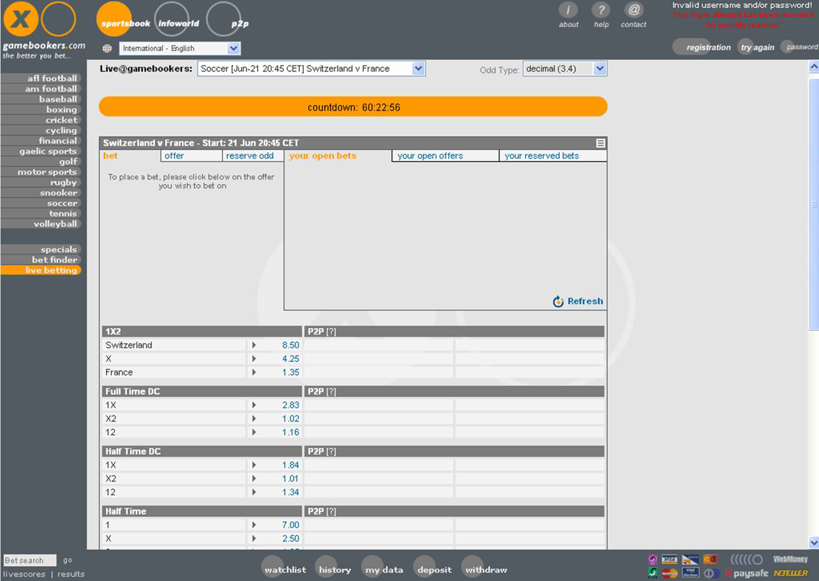 For example, signing up takes a mere three or four minutes, and does not require an immediate deposit. Deposit itself is a simple process, which can take place through a staggering array of methods, upon none of which Gamebookers charges fees. Withdrawals are simple and reliable, and most important, both quickly available and quickly dealt with.