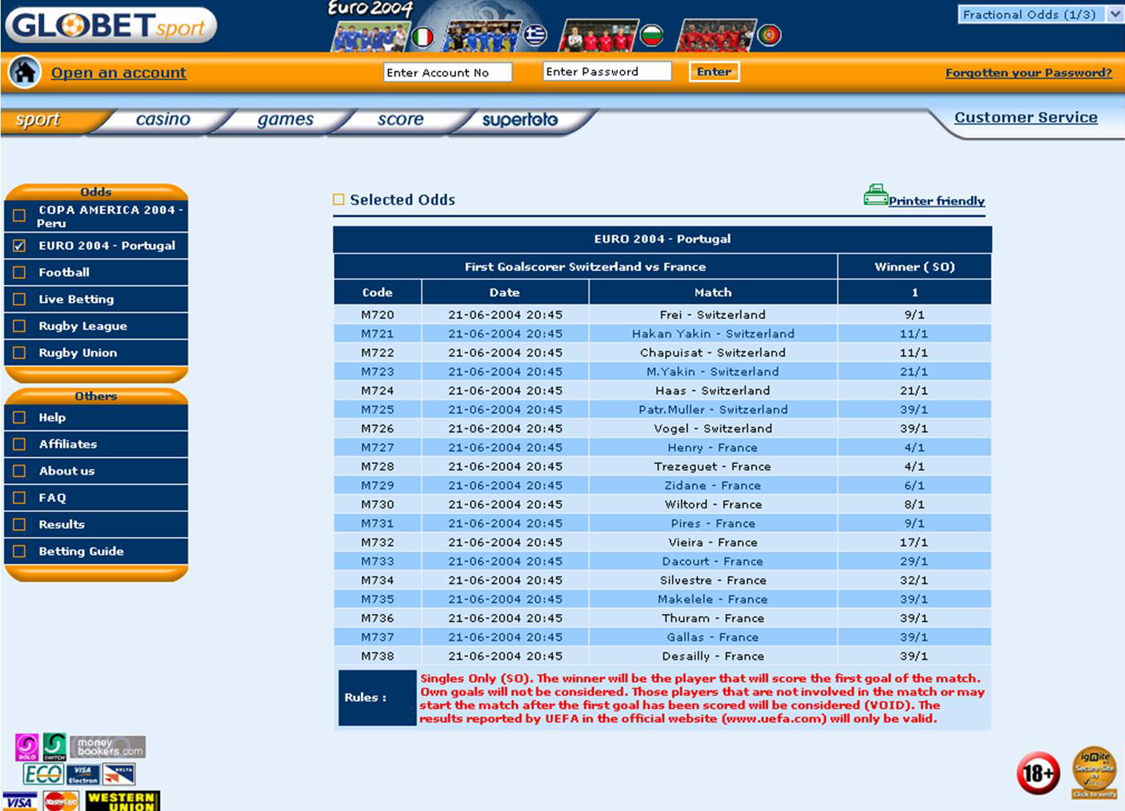 Overall, there is nothing wrong with GloBet, but there also seems to be little reason to recommend it. The range is limited and the odds are average and appear late. Furthermore, its purpose seems slightly confused, as its help-lines are based in Europe but many of its sports cater towards an American audience. Perhaps its niche could lie with foreign language speakers, although the limited sports available and lack of foreign language support also make this dubious.