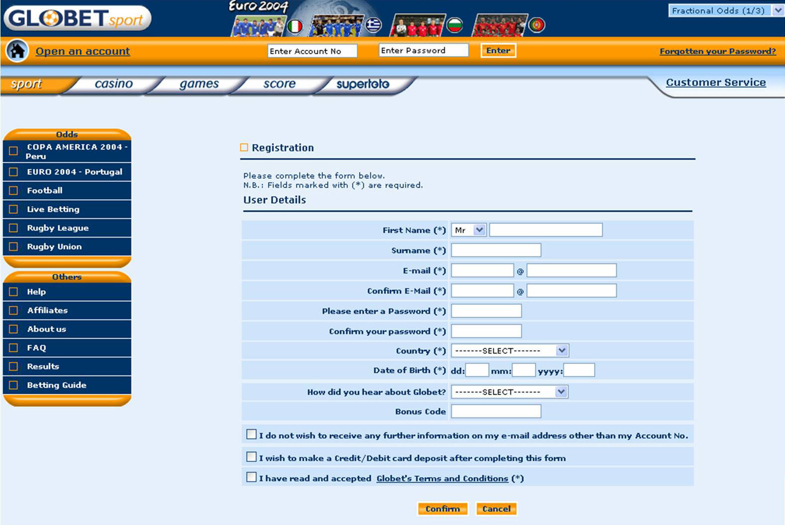 GloBet has been trading since 1996, and in 2002 it made a profit of £5m on a turnover of £50m. For peace of mind, GloBet is registered with the UK-based independent betting arbitration service IBAS.